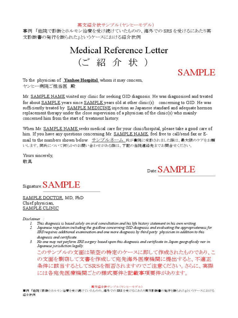 英文診断書 紹介状 意見書セット 紹介状サンプル