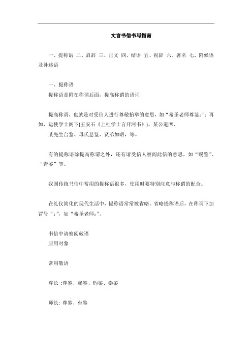 文言书信书写指南 最全 百度文库
