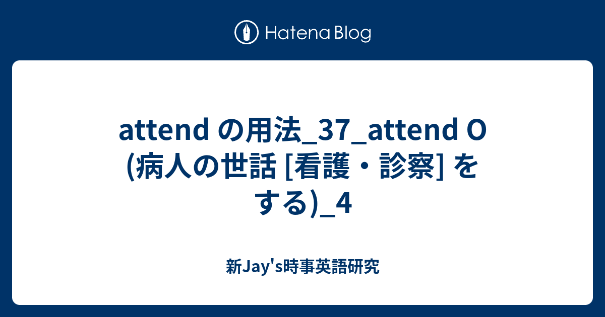 Attend の用法 37 Attend O 病人の世話 看護 診察 をする 4 新