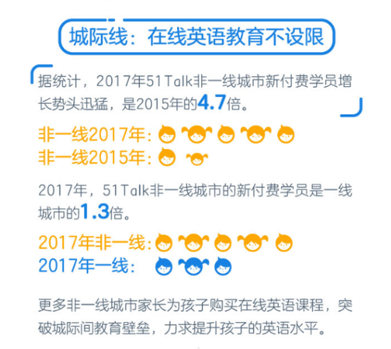 51talk发布在线英语学习报告 非一线城市学员客单价已接近一线城市